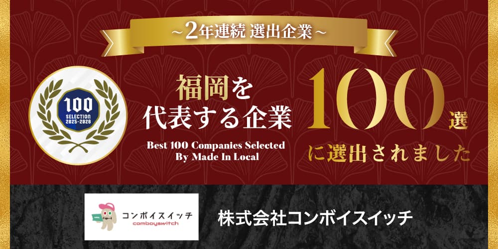 株式会社コンボイスイッチ(本社:福岡県福岡市、代表取締役 岡崎 靖弘)は、地方創生メディア「Made In Local」が主催する「福岡を代表する企業100選(2025-2026)」に、昨年に続き2年連続で選出されたことをお知らせいたします。