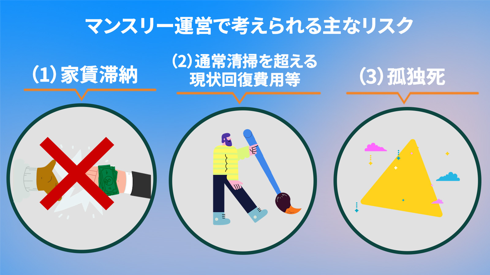 マンスリーマンション運営においては、以下のような事象が発生する可能性があります。