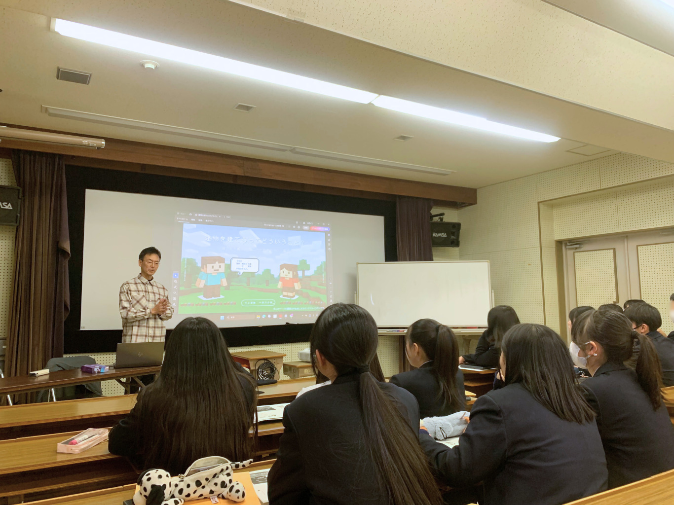 授業冒頭には、同校出身である取締役副社長・中川より挨拶を行いました。