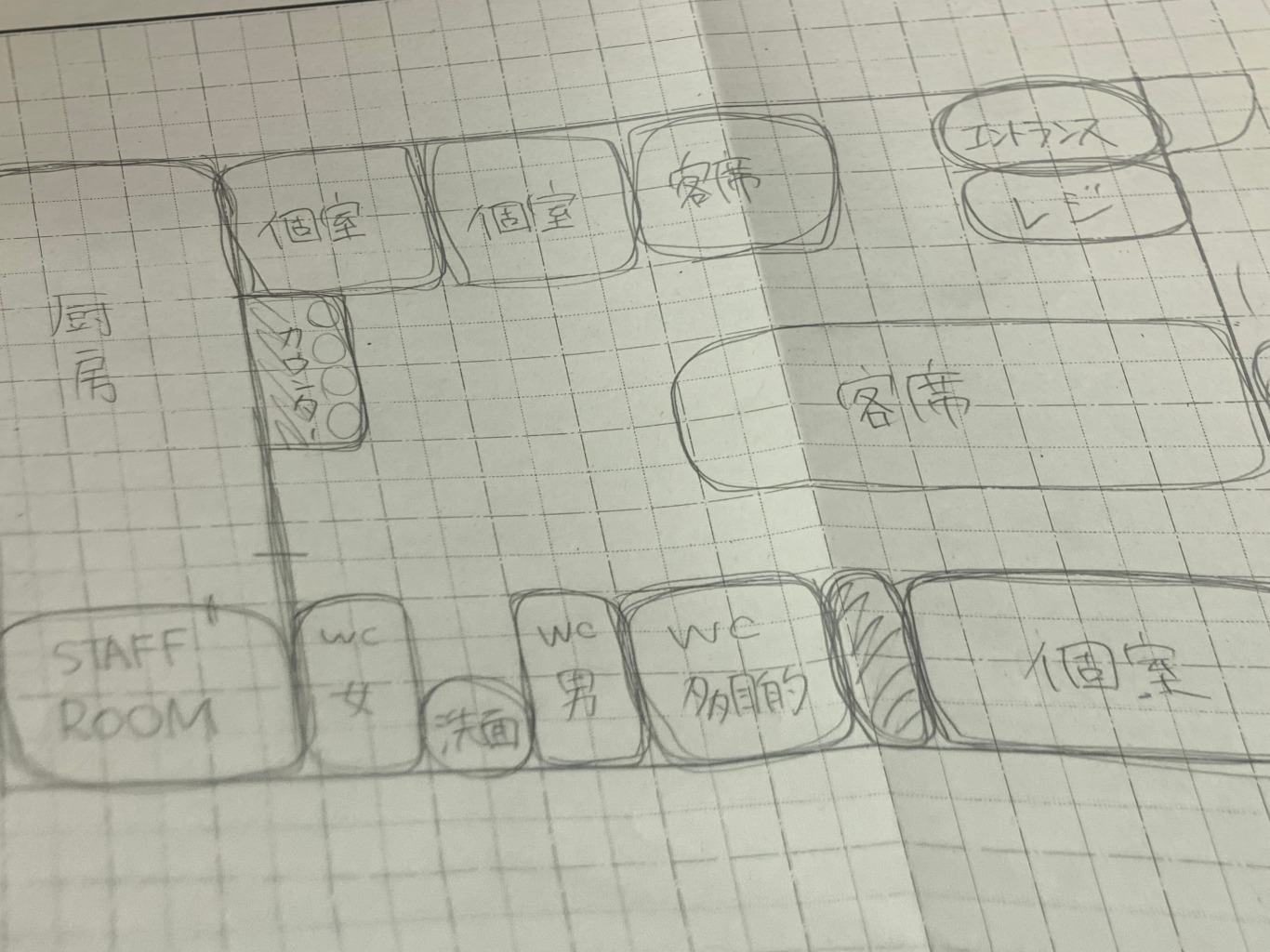 など、店舗づくりに欠かせない“空間の役割分け”をチームで考え、図面上に配置する体験を行いました。