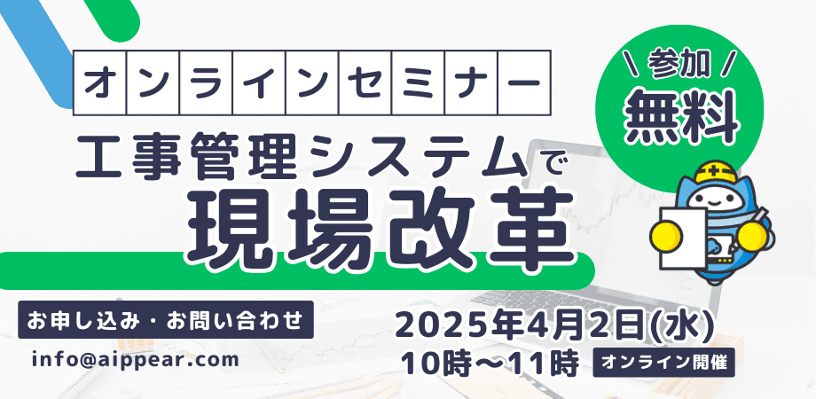 「工事管理システムで現場改革」オンラインセミナー開催のお知らせです。