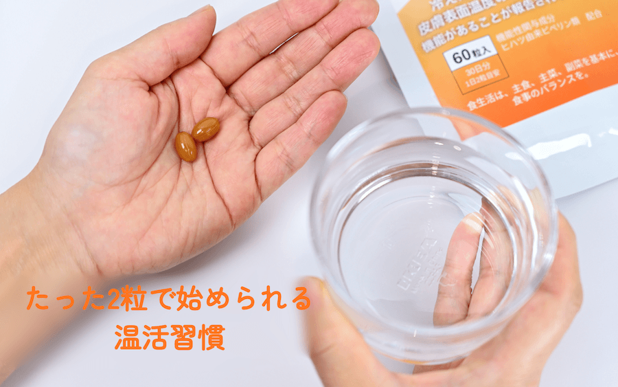 本品にはヒハツ由来ピペリン類が含まれます。ヒハツ由来ピペリン類は、冷えにより低下した血流(末梢血流)を正常に整え、冷えによる末梢(手足)の皮膚表面温度の低下を軽減する機能があることが報告されています。また、脚のむくみが気になる健常な女性の夕方の脚のむくみ(病的ではない一過性のむくみ)を軽減する機能があることが報告されています。