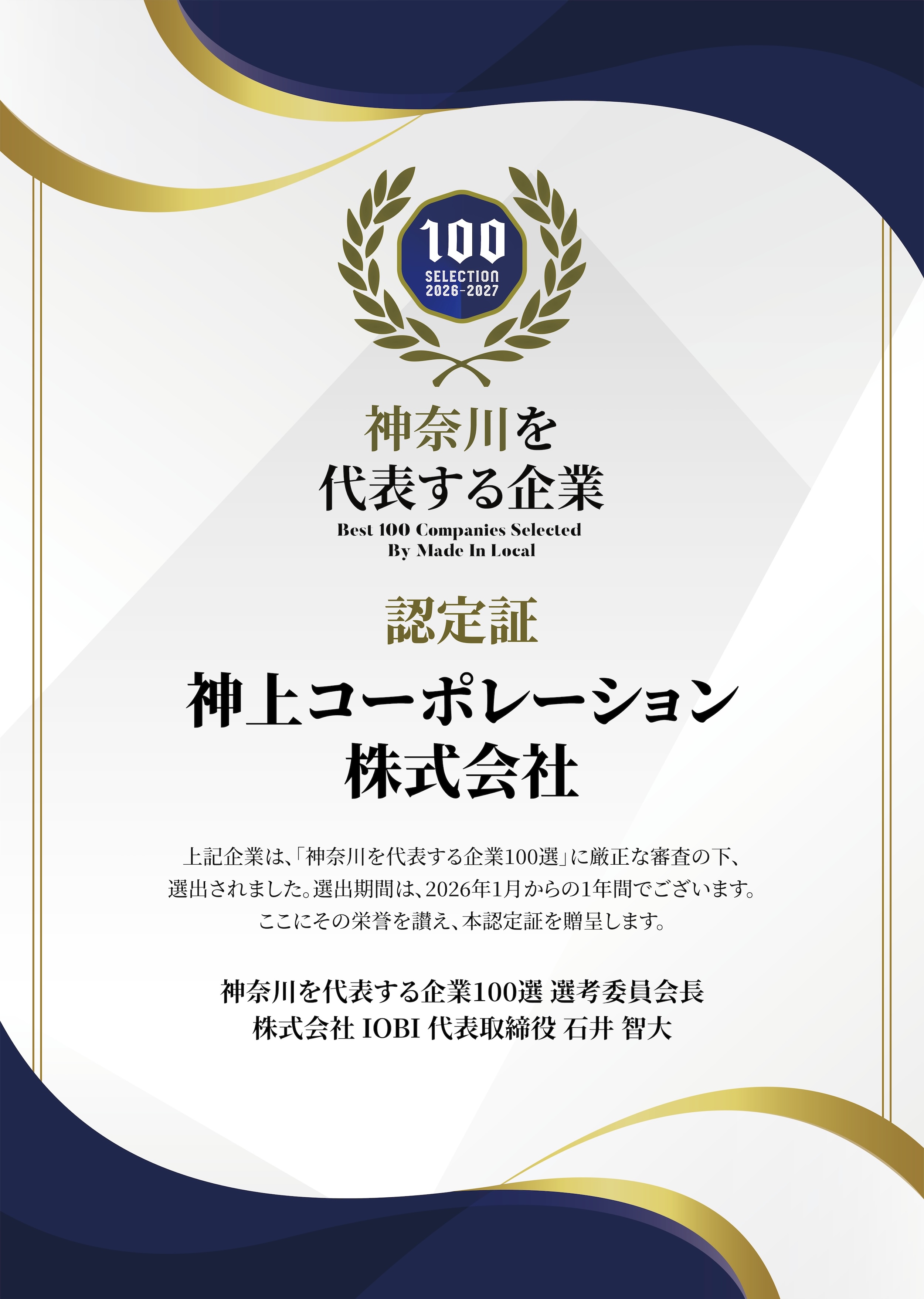 神上コーポレーション株式会社(本社:神奈川県、代表取締役:鈴木崇司)は、地域情報サイト「Made In Local」が主催する「神奈川を代表する企業100選」において、厳正な審査の結果、2026年度の認定企業として選出されました。
