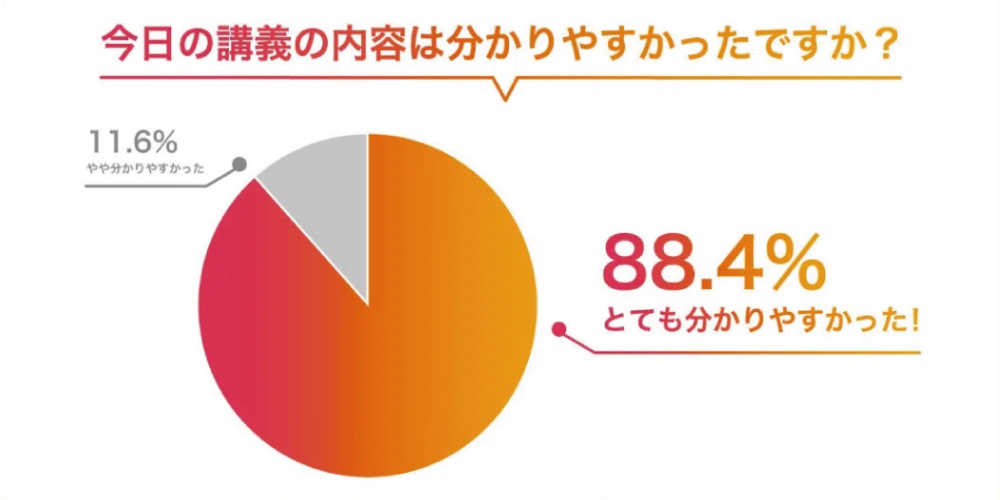 なんと 90%の方が「とてもわかりやすく良い講義だった」と回答してくれました。