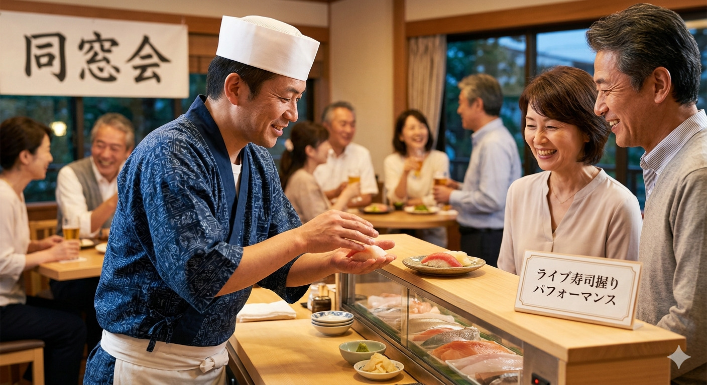 ④「職人の味」が楽しめる:お弁当やケータリングのプロが運営するため、目の前で寿司を握るパフォーマンスなど、普通の居酒屋にはない特別な料理を味わえます。
