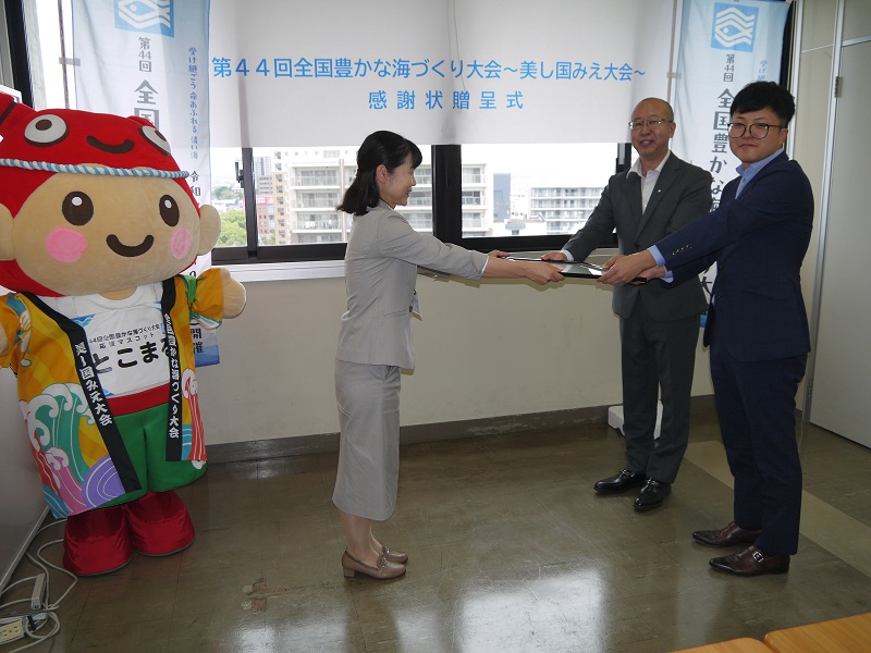 株式会社養殖屋(所在地:三重県志摩市、代表取締役:前田勉)は、ゼブラファーム株式会社(所在地:東京都千代田区、代表取締役:木村太一)と共同で、「第44回全国豊かな海づくり大会〜美し国みえ大会」への協賛を行いました。また、令和7年10月3日(金)に、三重県庁6階農林水産部ミーティングルームにおいて、協賛に対する感謝状贈呈式を開催いただきました。