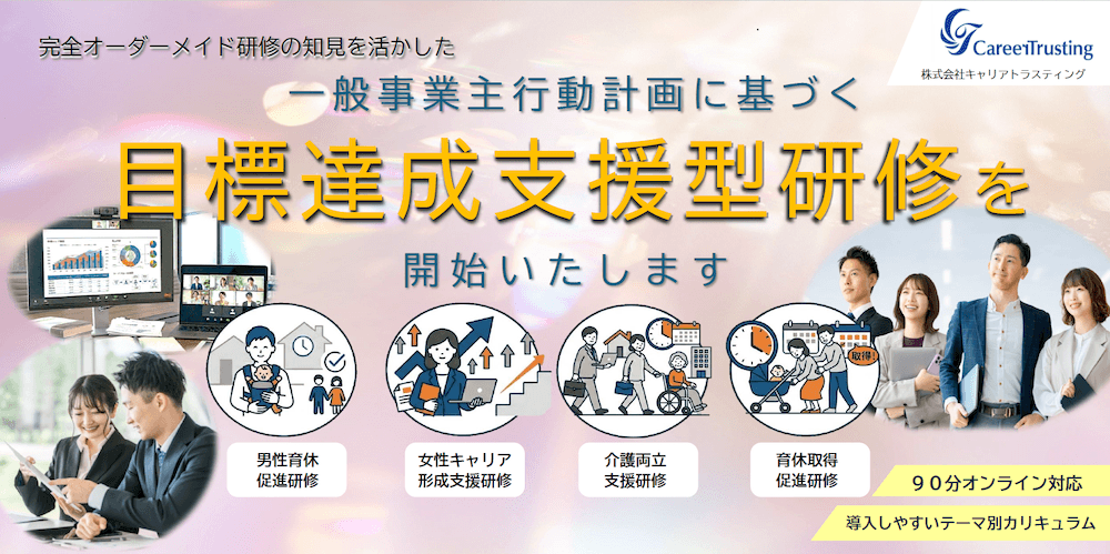 株式会社キャリアトラスティング(所在地:長野県長野市、代表取締役:霜鳥 光)は、企業の人材育成および組織課題の解決を支援してきた実績とノウハウをもとに、「一般事業主行動計画に基づく目標達成支援型研修」の提供を開始しました。