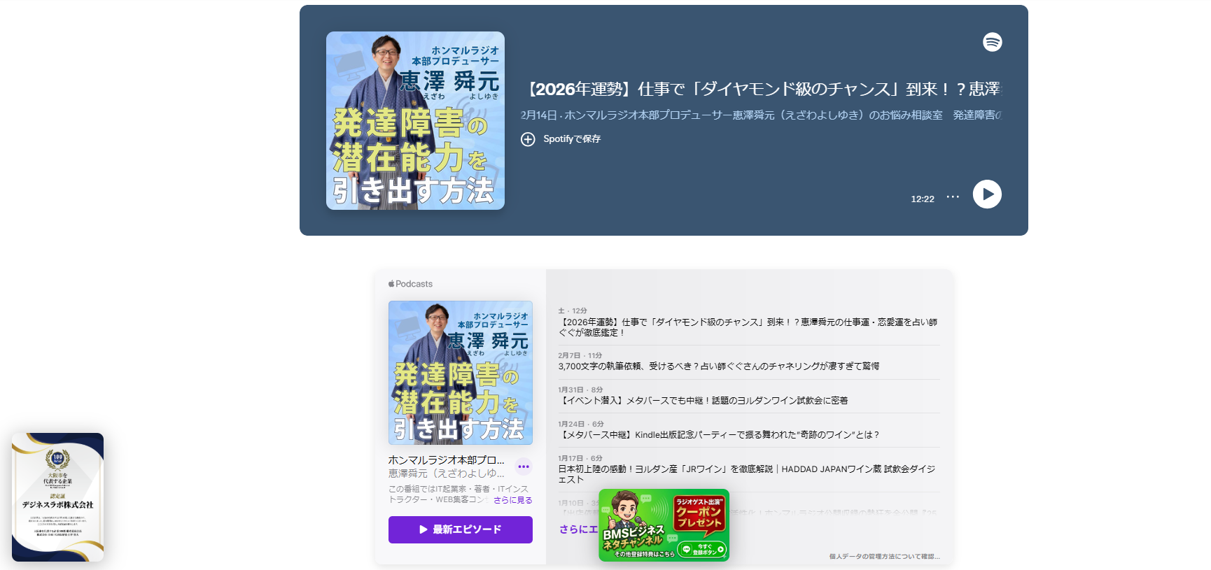 ホンマルラジオでの公開収録に加え、YouTube、Spotify、Podcast、Amazon Musicといった主要プラットフォームで番組を同時配信。AIを活用した編集・配信プロセスにより、鮮度の高い情報を多角的に届けることが可能です。