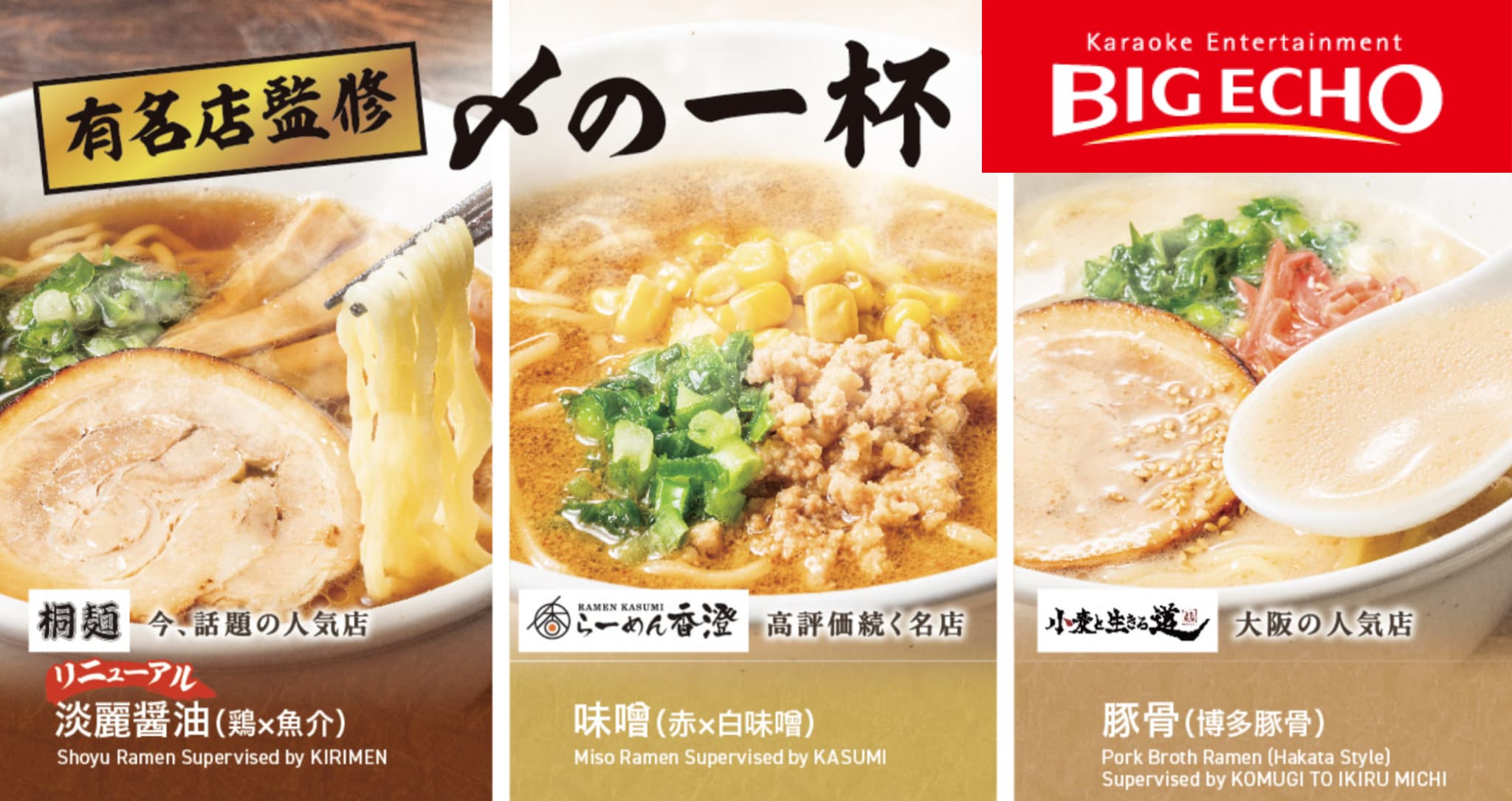 2026年2月25日(水)より、株式会社第一興商が運営する「カラオケルームビッグエコー」全店で「らーめん香澄」が監修するオリジナルラーメンの提供を開始いたしました。