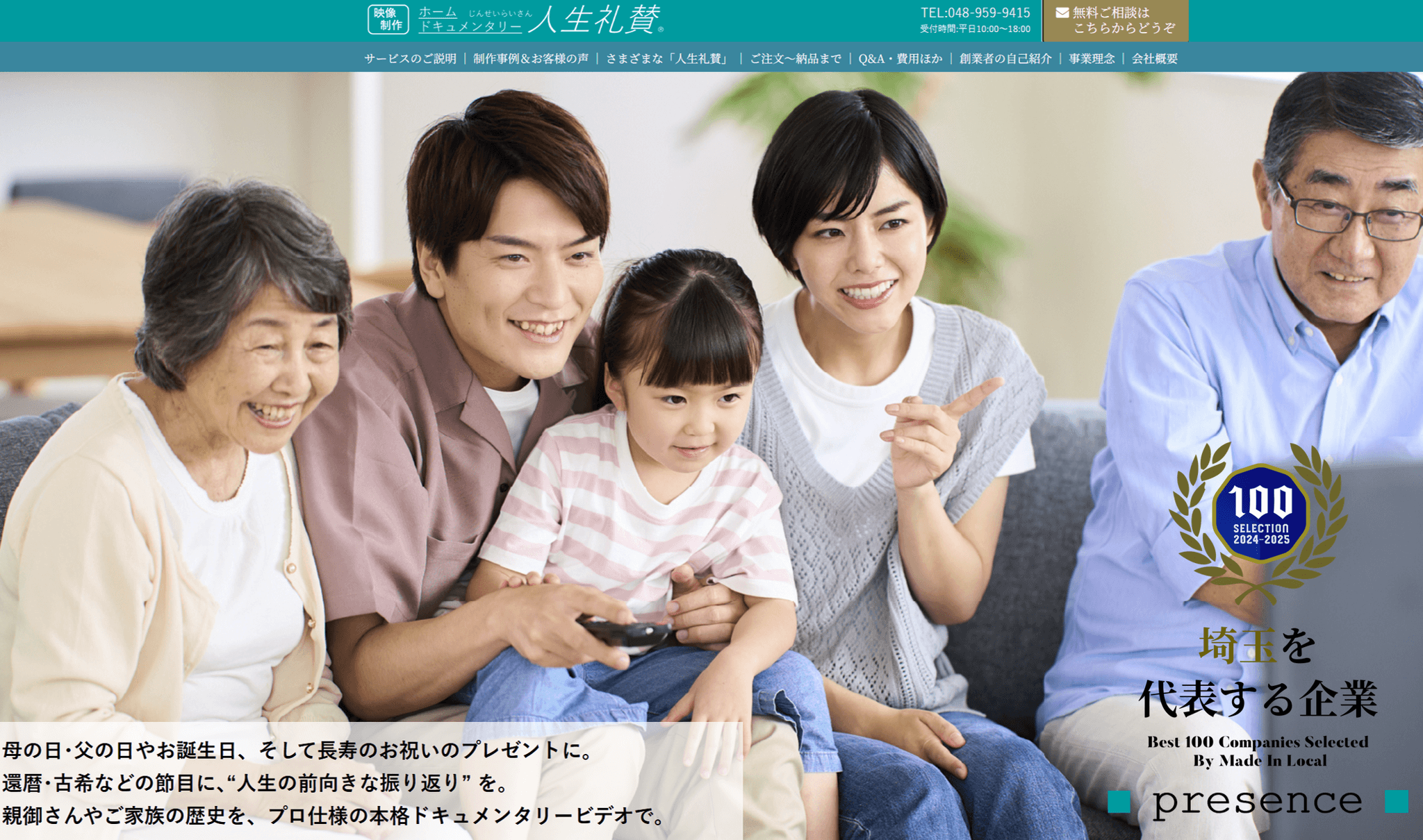 映像制作『ホームドキュメンタリー人生礼賛®(じんせいらいさん)』。