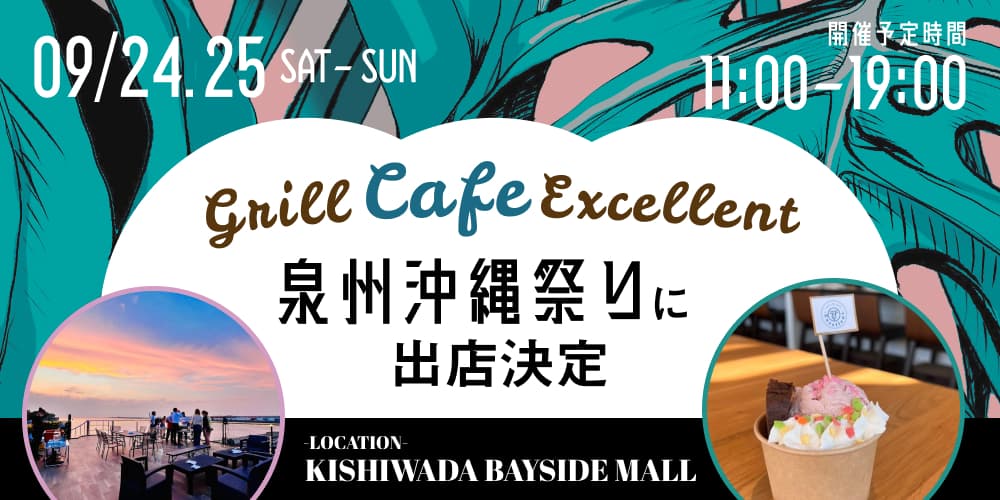 今回ご紹介するのは、9月24日、25日の泉州沖縄祭りに出店される!!「Grill Cafe Excellent」です!