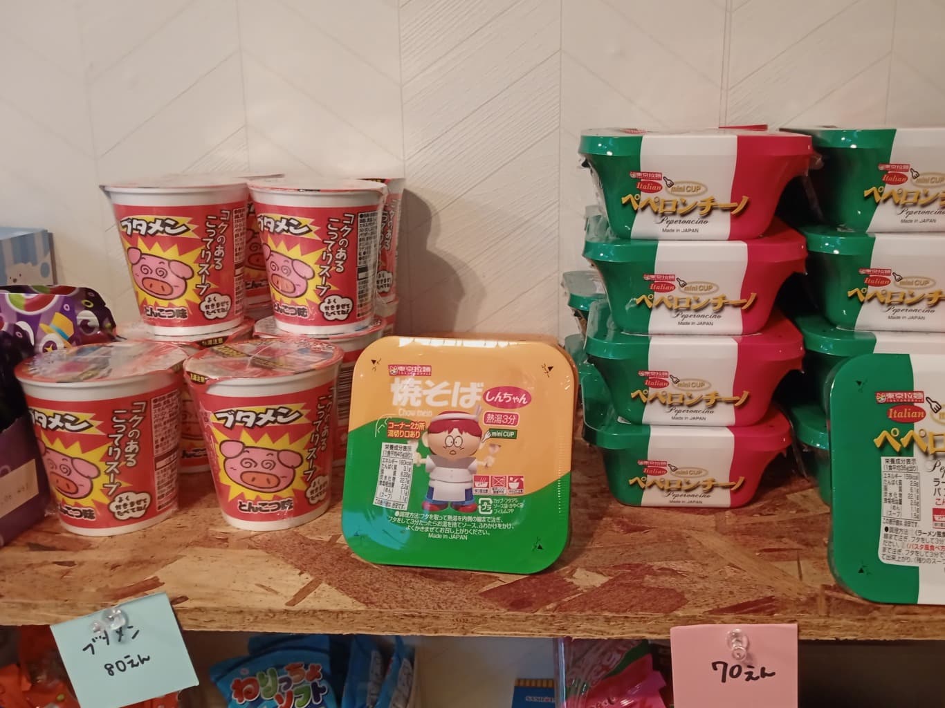 麺類シリーズは今でも大人気です!特に、右の「ペペロンチーノ」が大人気で、1時間半に60個も売れたことがあるそうです🍜