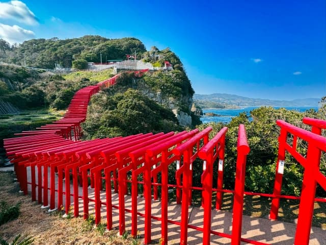断崖と日本海に向かって123基の鳥居が100m以上にわたって並ぶ景色はまさに圧巻!