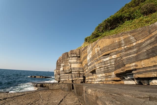 須佐ホルンフェルスは、萩市の北長門海岸国定公園内に位置しており、美しい遊歩道や展望台が整備されています。