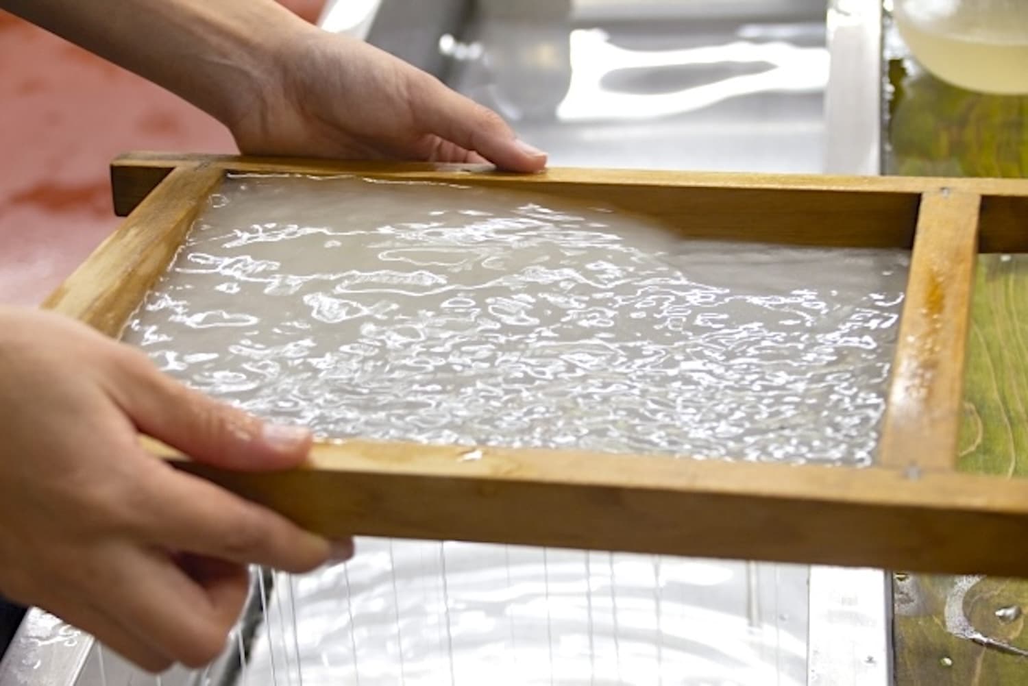 この工房では、和紙の原料や工程を教えてもらいながら、手漉き和紙を制作できます。