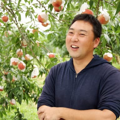 震災後の2012年、エンジニアを辞め、故郷に良い職場を作るべく創業いたしました。しかし、当時は安価な農産物により、生活も雇用も厳しい状況です。そんな中、中小企業の先輩社長の言葉「何のために農業をやるか」を考え続け、顧客想いの農業を体現しようと決意いたしました。その後、2016年に参加したドイツ研修を機に、農業の力で県外客による岩手への消費活動を促進しようと、通販事業を本格化させ現在は、「朝獲り完熟桃」を当日出荷でお届けしており、直売所でも鮮度抜群の果物を提供しています。これからも、収穫を心待ちにしてくださる全国のお客様に向き合いながら、未来にわたり農産物を作り続けられるよう励んでまいります。