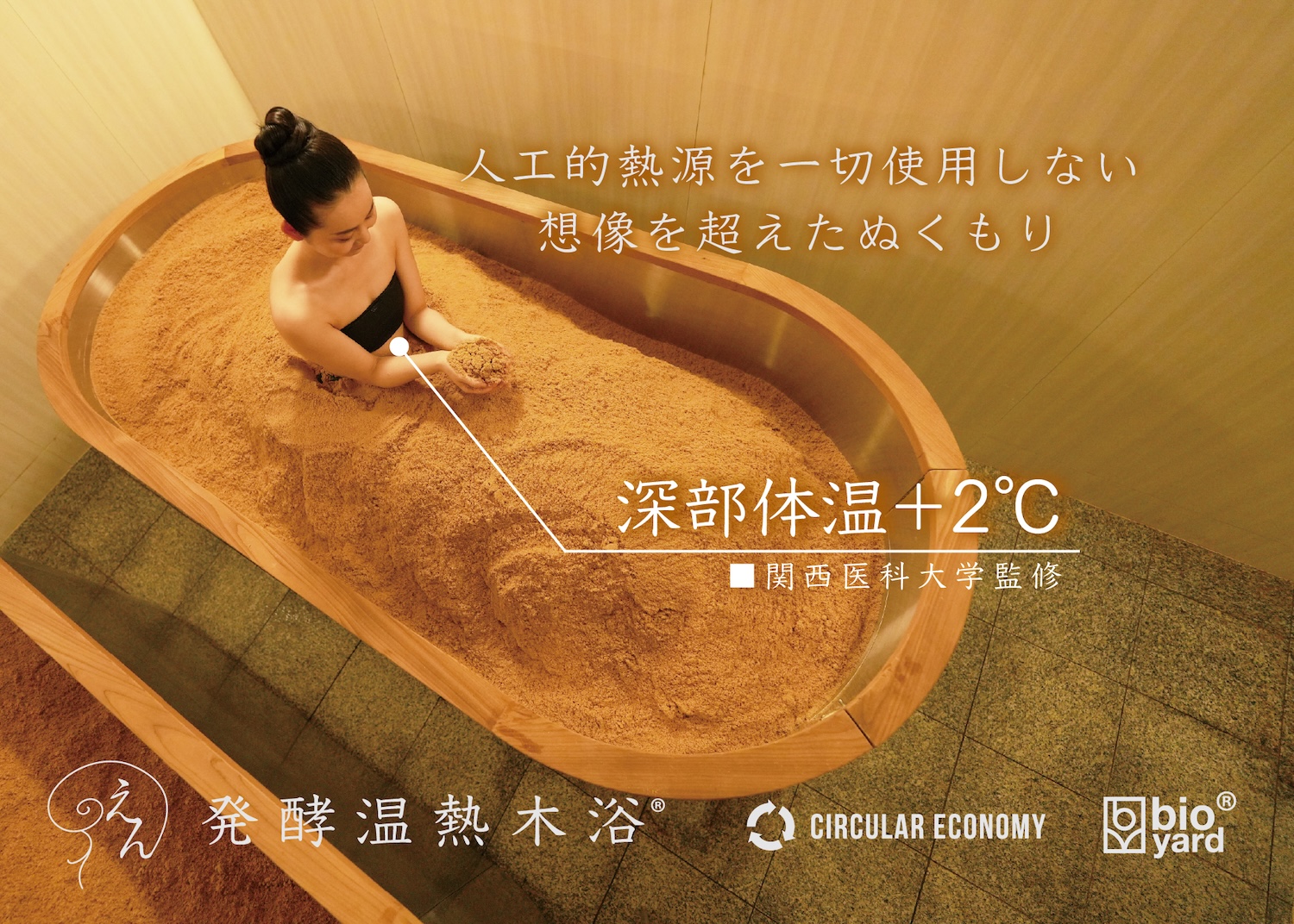 木浴は、自然界にあるオーガニックな素材を丁寧な手仕事を重ねることで、深部体温を+2℃高めることを関西医科大学監修の元、実証しました。