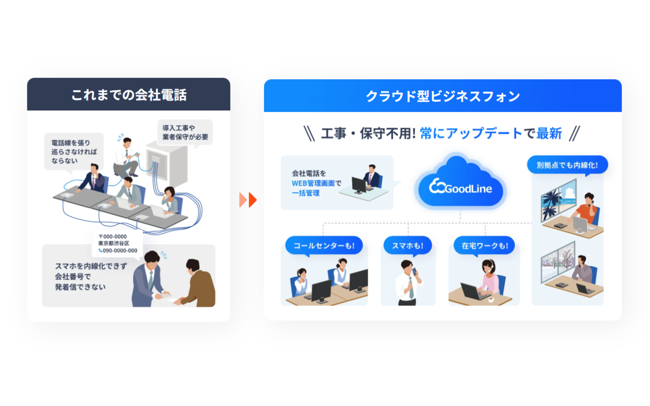 弊社は2012年に創業、2014年に法人化しました。当初から、企業の電話が設備や業界慣習に縛られていることに課題意識を持ち、クラウドPBXを中核とする電話サービスの提供に挑戦してきました。企業の電話はリースや償却を前提とした設備投資であり、運用は業者任せになる構造が一般的なため、新しい仕組みを能動的に知る機会がなく、課題があっても変更できない状況でした。そうした中でも業務や働き方の変化を見据え事業を継続し、転換点となったのはコロナ禍です。出社できない環境の中で、場所に縛られない電話の価値が広く認識され、導入企業が拡大しました。現在は運用実績を重ね、企業活動の基盤を支える存在として事業を担っています。
