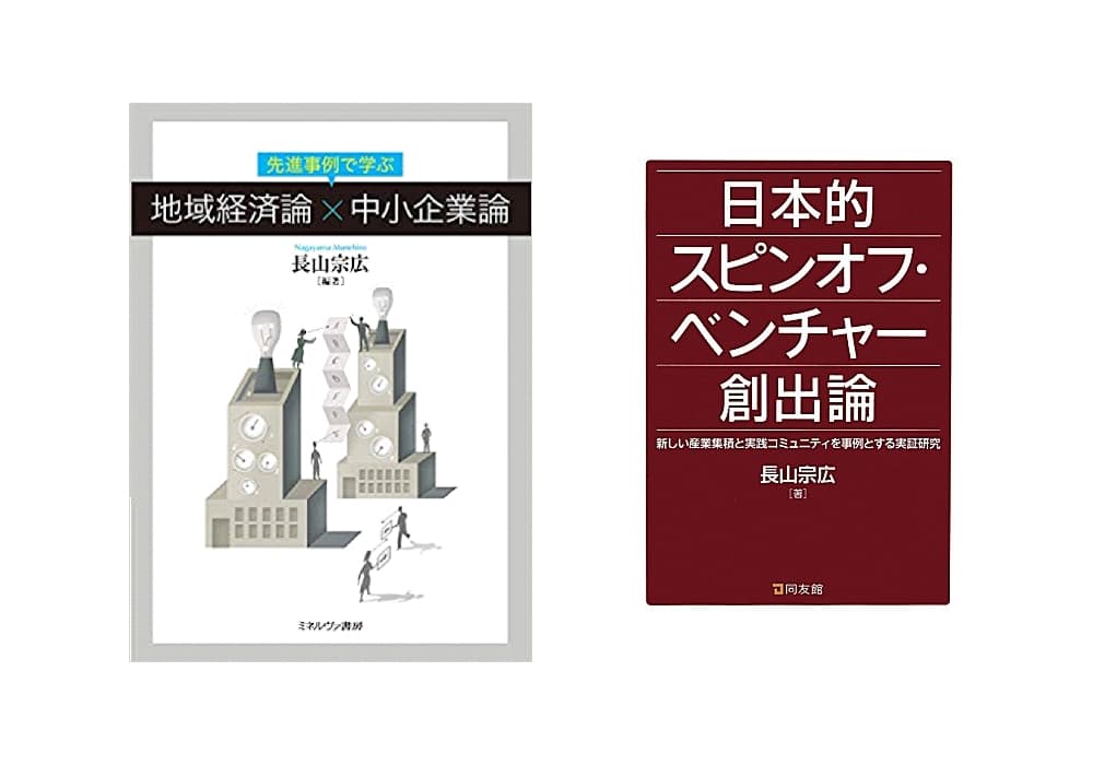 『日本的スピンオフ・ベンチャー創出論-新しい産業集積と実践コミュニティを事例とする実証研究』(左 2012年)『先進事例で学ぶ 地域経済論×中小企業論』(右 2020年)